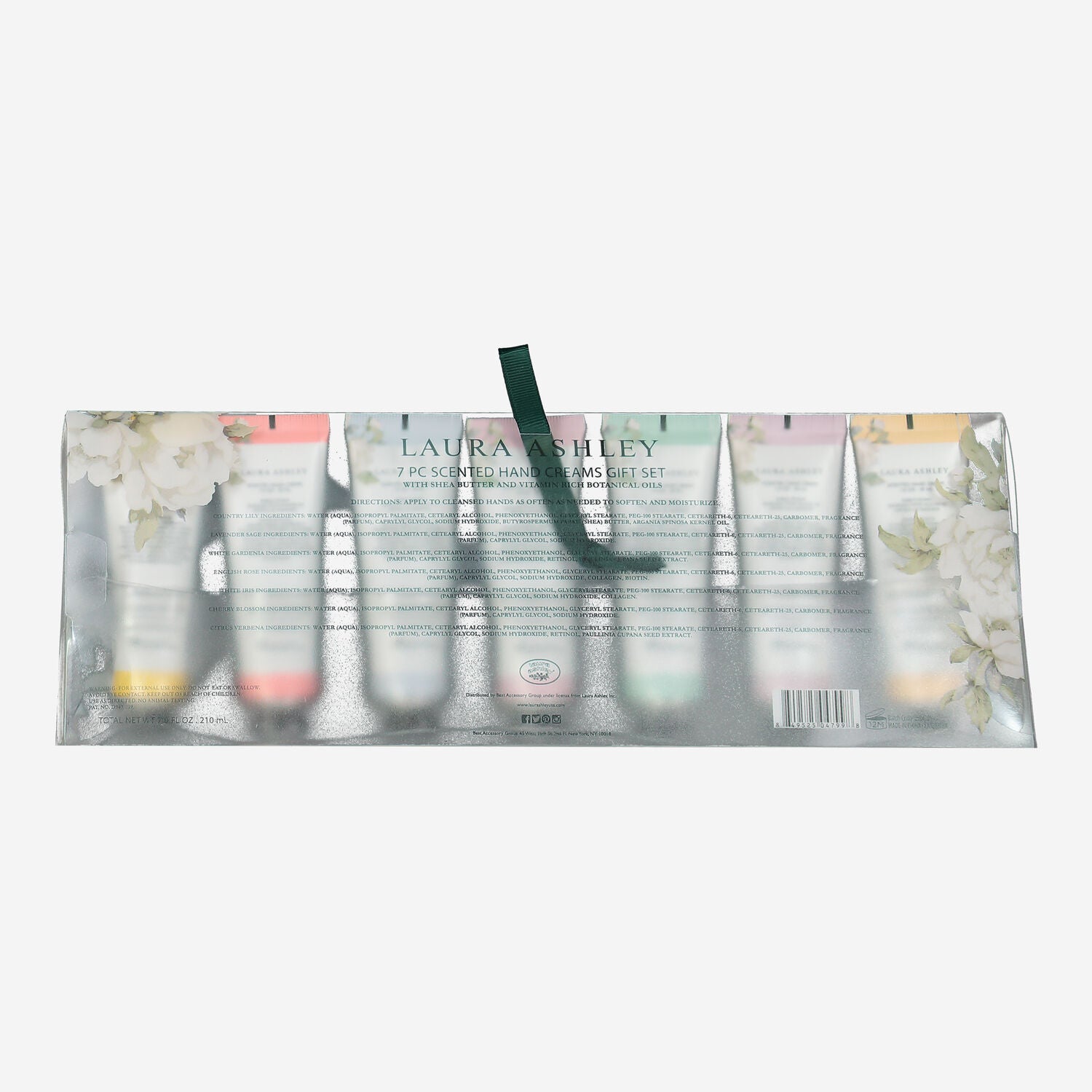 Pamper your hands with this gorgeous Laura Ashley collection of seven luxurious hand creams. Each rich formula glides on smoothly, leaving skin feeling soft, nourished, and delightfully fragrant.