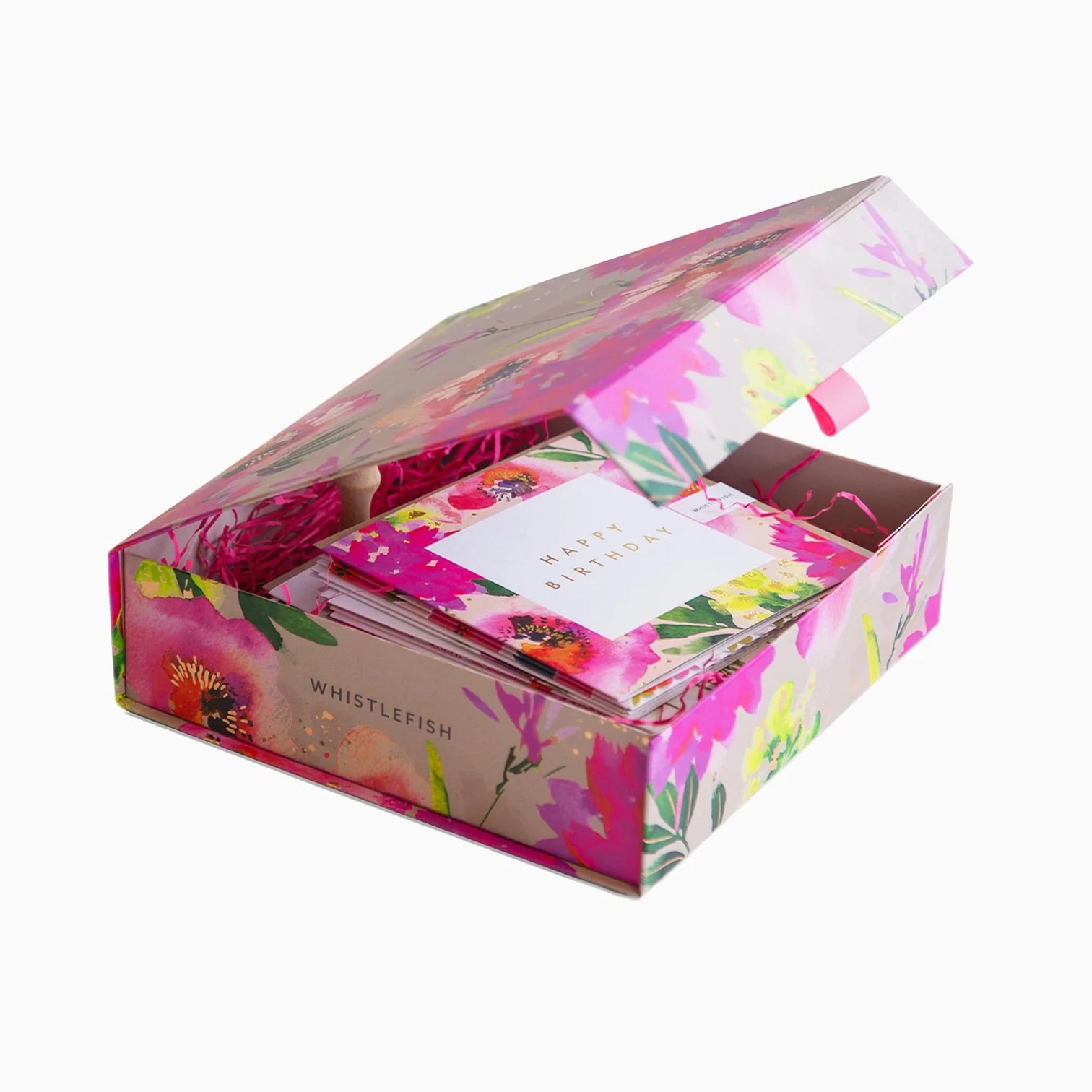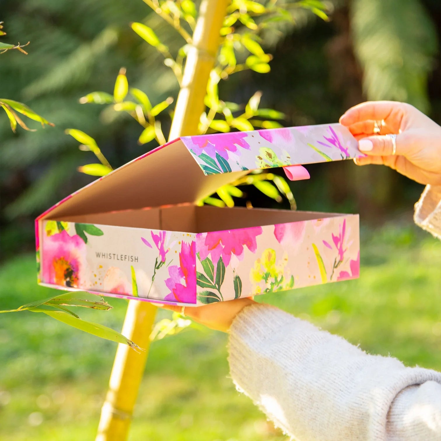 Bright, bold, and beautifully practical, this magnetic keepsake box is perfect for storing treasured mementoes, letters, or special gifts. Adorned with vibrant floral artwork, it brings a touch of nature’s charm to any space. With a secure magnetic closure and a coordinating ribbon tab, it’s both stylish and functional—ideal for gifting or keeping your cherished memories safe.