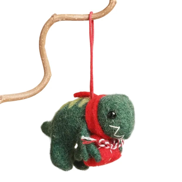 Add a playful twist to your festive décor with this charming dinosaur hanging decoration.
