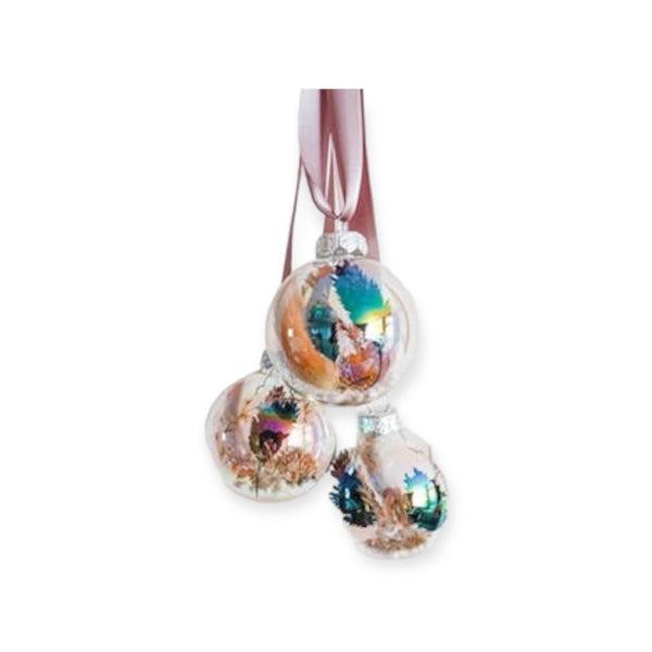 Christmas Glass Baubles With Dried Flowers - Colourful Mix