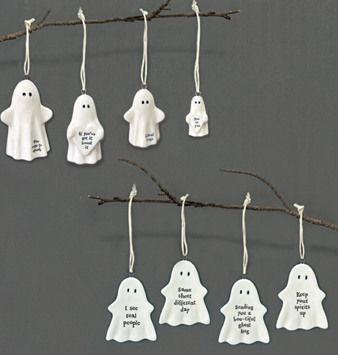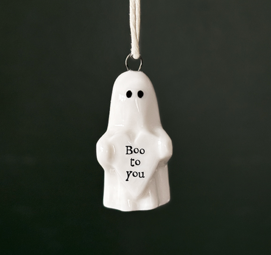 Add some spook to someone’s day with this sentimental hanging ghost from East of India. This cute little sign makes the perfect little Halloween gift.This ghost shaped porcelain hanger is holding a small heart which reads ‘Boo to you’ written in the traditional East of India style font.