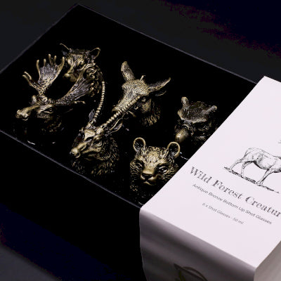 Each of the six glasses features a magnificent, highly-detailed head of a different wild forest creature, finished in a realistic antique bronze effect. The careful craftsmanship turns this barware into miniature pieces of functional art.