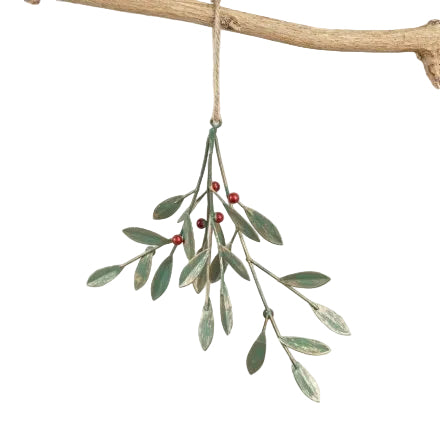 With a gold antique finish this bunch of leaves with red berries makes a unique and decorative accessory for the home this season. Made from metal with gold tipped leaves and red berries. Complete with a jute string hanger.