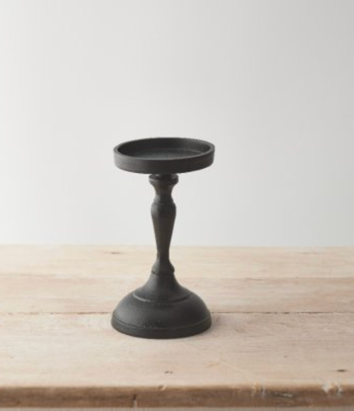 An elegant candle holder made from raw aluminium with a matt black finish.