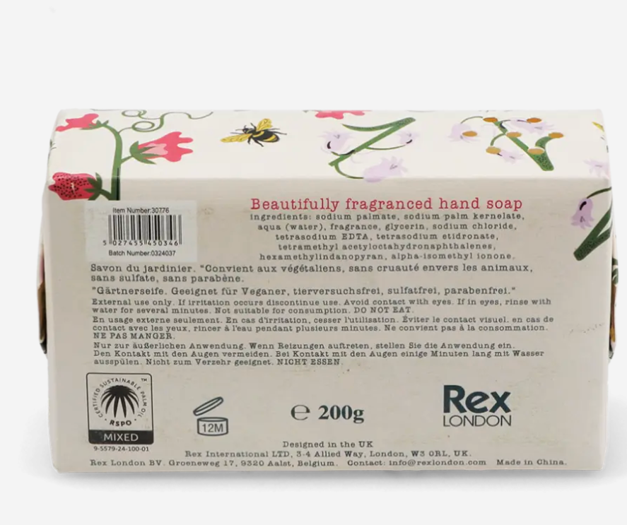 Discover the invigorating essence of this gardener’s soap, enriched with natural, herbaceous aromas reminiscent of honey bee .