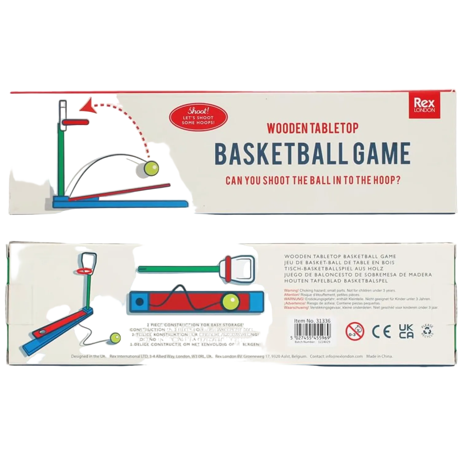 Test your aim and shoot some hoops with this fun wooden basketball game. Use the spring-loaded launcher to score as many points as you can - either by yourself or against a friend!