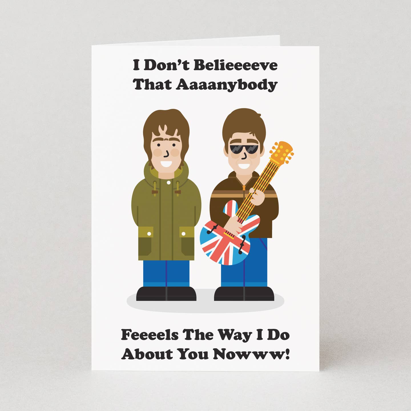 Today is gonna be the day that I'm gonna send a Valentine's Day card to you. By now, you should have somehow realised that this Valentine's card is for you. Let Liam Gallagher sing the rest in the card caption: "I don't believe that aaaaanybody feeeeeels the way I do about you nooow!" The perfect greeting card for an Oasis fan, or someone with 90's nostalgia.