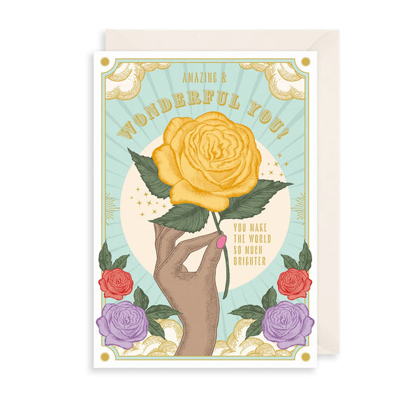 Show your support with this thoughtful get well soon card. This card features celestial sun shining in the sky. It reads 'Feel brighter soon, sending you sunshine'.