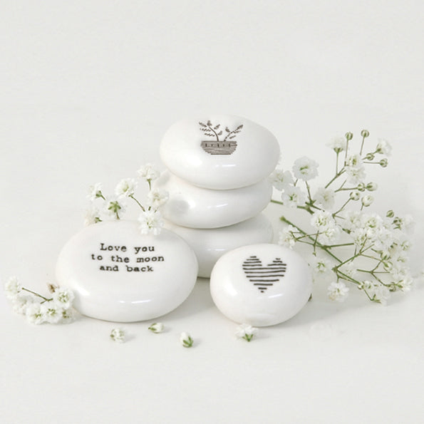 Bring a luxurious touch to your home with our exquisite Porcelain Pebble - Moon & Back. This piece offers a unique blend of artistry and craftsmanship, made from luxurious porcelain with a high-gloss finish. Exuding sophistication, this timeless piece is the perfect addition to any interior, providing a sense of elegance and exclusivity.